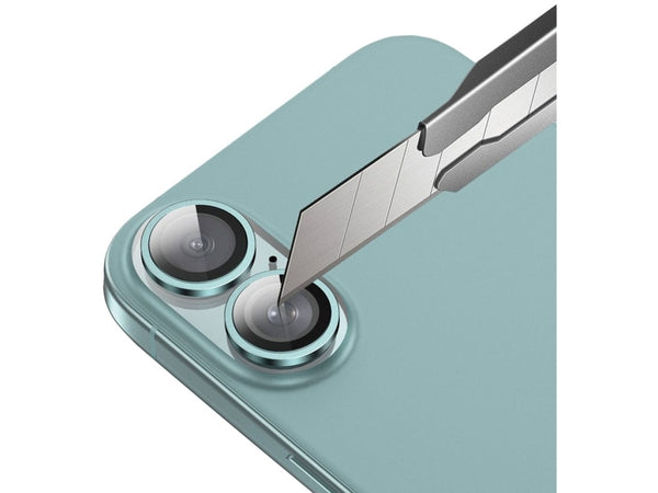 Screenguard Apple iPhone 16 Kameraschutz Glas mit Aluminiumrahmen teal