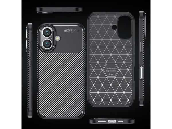 Die elegante Schutz Hülle für dein Apple iPhone 16 Plus im Carbon Look schwarz verbindet Design mit Funktionalität.