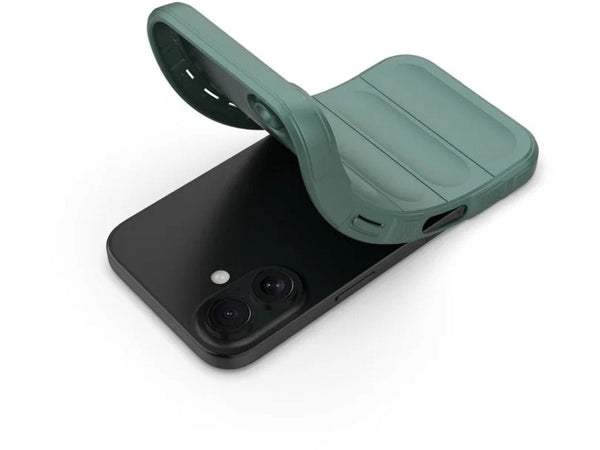 Das Design mit den horizontalen Cushion Streifen verleiht dem Apple iPhone 16 Plus zusätzlich einen aussergewöhnlichen Look. Diese Handyhülle ist perfekt für diejenigen, die ihr Handy sicher und stabil halten und gleichzeitig eine stilvolle und einzigartige Handyhülle haben möchten.