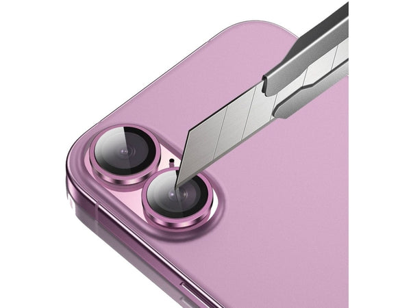 Screenguard Apple iPhone 16 Plus Kameraschutz Glas mit Aluminiumrahmen pink