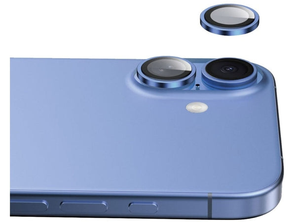 Screenguard Apple iPhone 16 Plus Kameraschutz Glas mit Aluminiumrahmen ultramarin