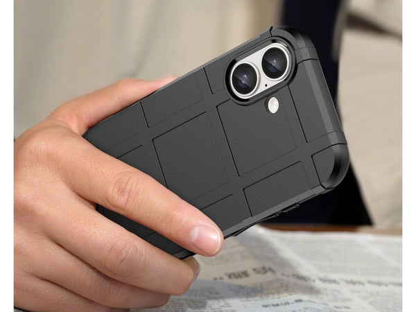 Extra starker Schutz für dein Apple iPhone 16 Plus mit der Schutzhülle aus der Rugged Shield Series. Das stossfeste TPU Schutz Case in schwarz bewahrt dein Smartphone vor Schäden bei hartem Aufschlag auf dem Boden.