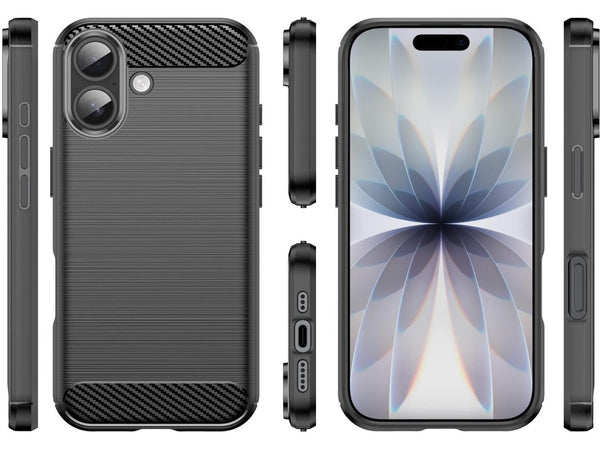 Das ultraleichte Fallschutz Cover mit Carbon Optik in schwarz schützt dein Apple iPhone 17 effektiv vor Beschädigungen im Alltag. Effektiv gegen Stürze oder Stösse welche unschöne Kratzer und Dellen an deinem Handy hinterlassen.