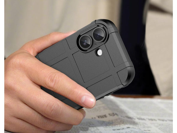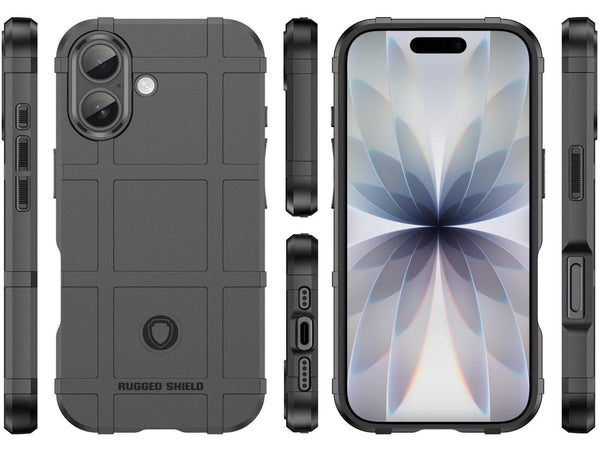 Extra starker Schutz für dein Apple iPhone 17 mit der Schutzhülle aus der Rugged Shield Series. Das stossfeste TPU Schutz Case in schwarz bewahrt dein Smartphone vor Schäden bei hartem Aufschlag auf dem Boden.
