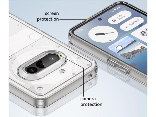 Die SuperClear Hybrid Schutzhülle für das Nothing Phone (3a) bietet einen effizienten Aufprallschutz bei Sturz und Stoss – in einem schlanken, transparenten Design, das das originale Aussehen Ihres Smartphones bewahrt.