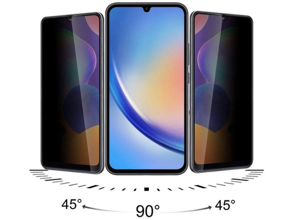 Mit der Privacy Sicht- und Blickschutz Panzerglasfolie für das Samsung Galaxy A34 5G schützen Sie Ihr Display zuverlässig vor neugierigen Blicken. Bereits ab einem Betrachtungswinkel von 45° wird der Bildschirminhalt unkenntlich, sodass vertrauliche Informationen in öffentlichen Räumen, im Zug, im Flugzeug oder am Arbeitsplatz sicher bleiben.