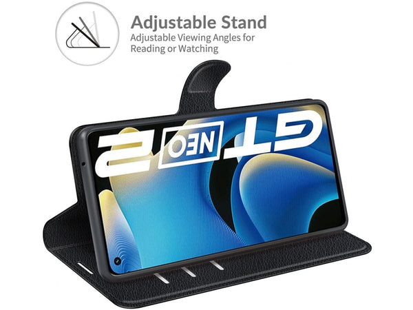 Das griffige Litchi Leder Etui ist langlebig und bietet eine angenehme Haptik, damit dir das Handy nicht aus der Hand rutscht. Das aufklappbare Design schützt zudem auch dein Realme GT Neo2 Handy Display.