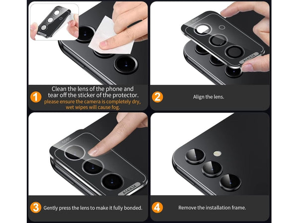 Die Schutzgläser sind exakt auf die Kamera Ihres Samsung Galaxy A55 5G zugeschnitten. Eine hochwertige Silikonschicht sorgt dafür, dass sie sich automatisch blasenfrei an die Linsen anlegen und sicher haften – ganz ohne komplizierte Montage. Mit dem mitgelieferten Ausrichtungsrahmen gelingt die Installation besonders einfach, und die Gläser lassen sich jederzeit rückstandslos wieder entfernen.