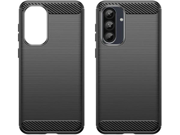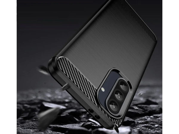 Das ultraleichte Fallschutz Cover mit Carbon Optik in schwarz schützt dein Samsung Galaxy A56 effektiv vor Beschädigungen im Alltag. Effektiv gegen Stürze oder Stösse welche unschöne Kratzer und Dellen an deinem Handy hinterlassen.