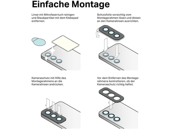 Das Set enthält passgenaue Einzelgläser für jede Kameralinse. Das widerstandsfähige, mehrfach beschichtete Glas verhindert effektiv Kratzer und Risse, während die oleophobe Oberfläche Fingerabdrücke, Öl und Schmutz abweist. Dank der Aluminiumumrandung (modellabhängig) entsteht zudem eine zusätzliche Anti-Impact-Barriere, die die Linsen vor Schäden durch harte Einwirkungen schützt.