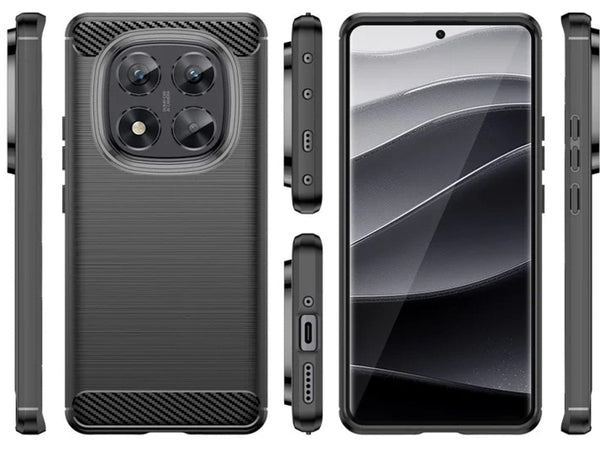 Das ultraleichte Fallschutz Cover mit Carbon Optik in schwarz schützt dein Xiaomi Poco X7 effektiv vor Beschädigungen im Alltag. Effektiv gegen Stürze oder Stösse welche unschöne Kratzer und Dellen an deinem Handy hinterlassen.